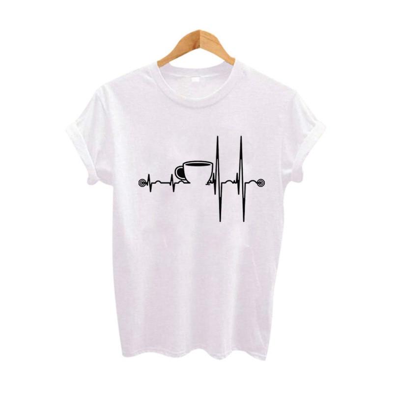 Coffee Heartbeat Graphic Tees Women Tumblr Hipster Punk Harajuku T-shirt Summer Funny t shirts Black White Tee shirt femme